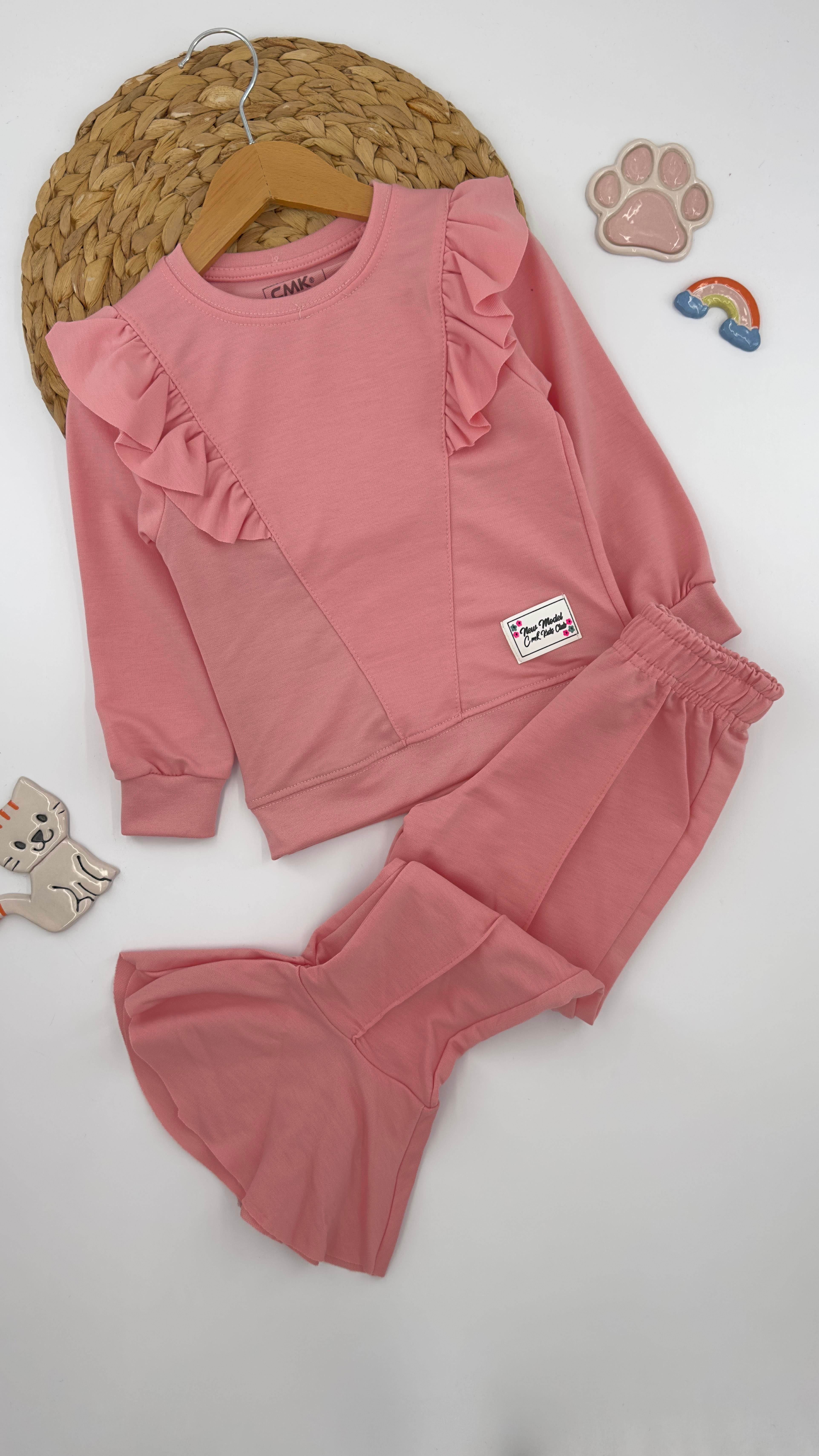 27090 New Model Armalı Ömuz Fırfırlı İspanyol Paça Takım PEMBE