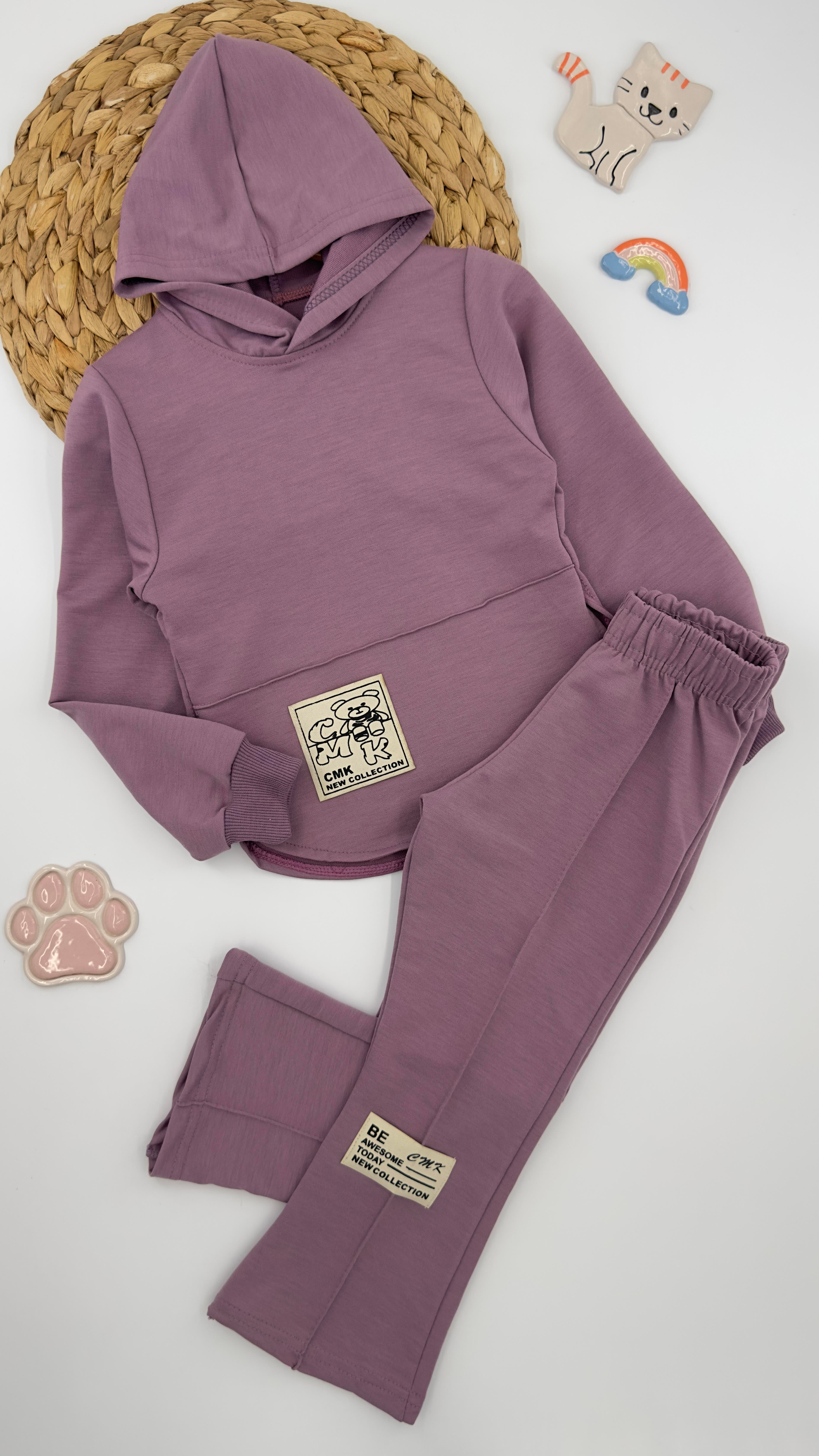 27090 Oval Kesim Kapişonlu Ayıcık Armalı Kız Takım MURDUM