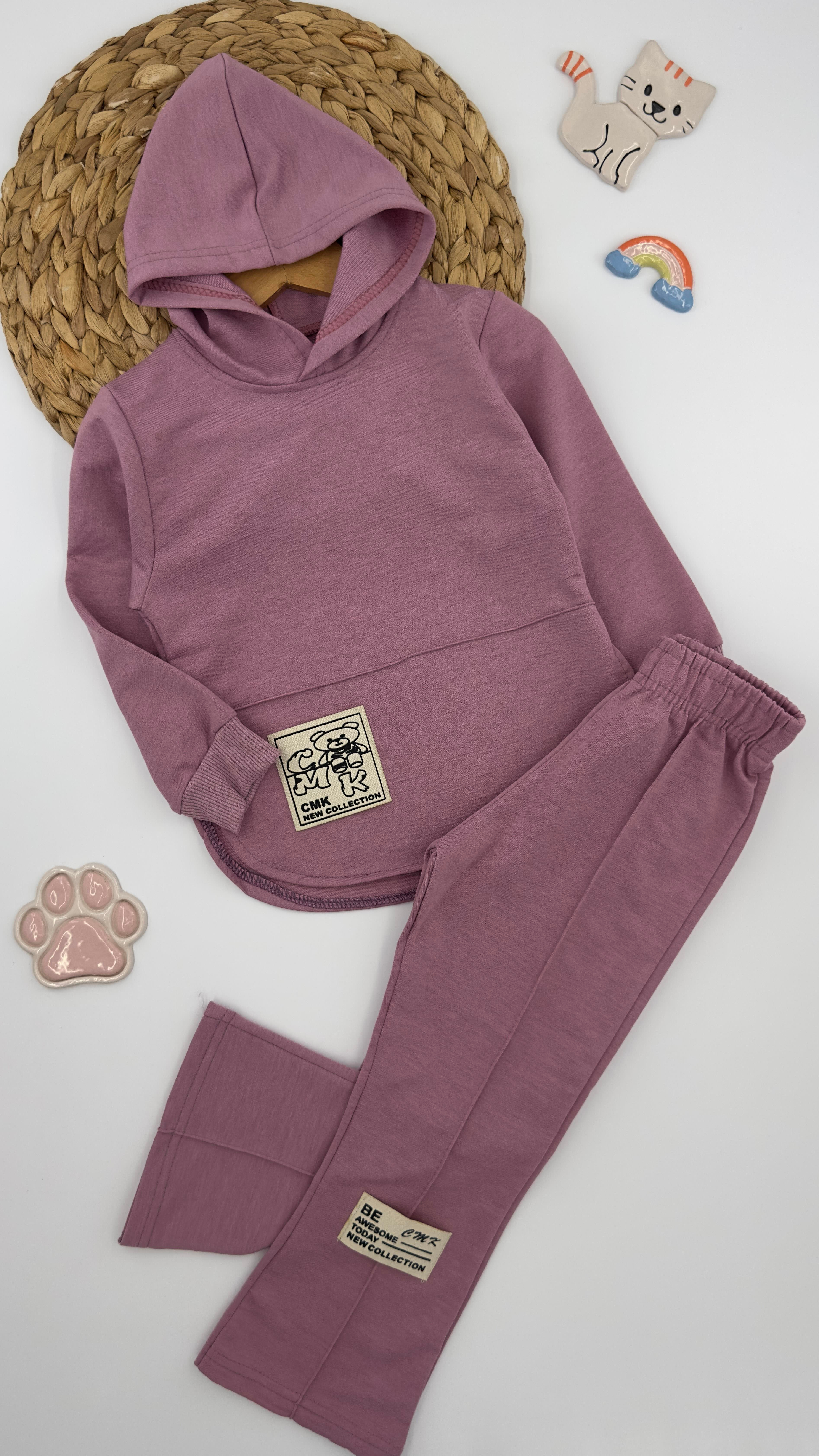 27090 Oval Kesim Kapişonlu Ayıcık Armalı Kız Takım PMR