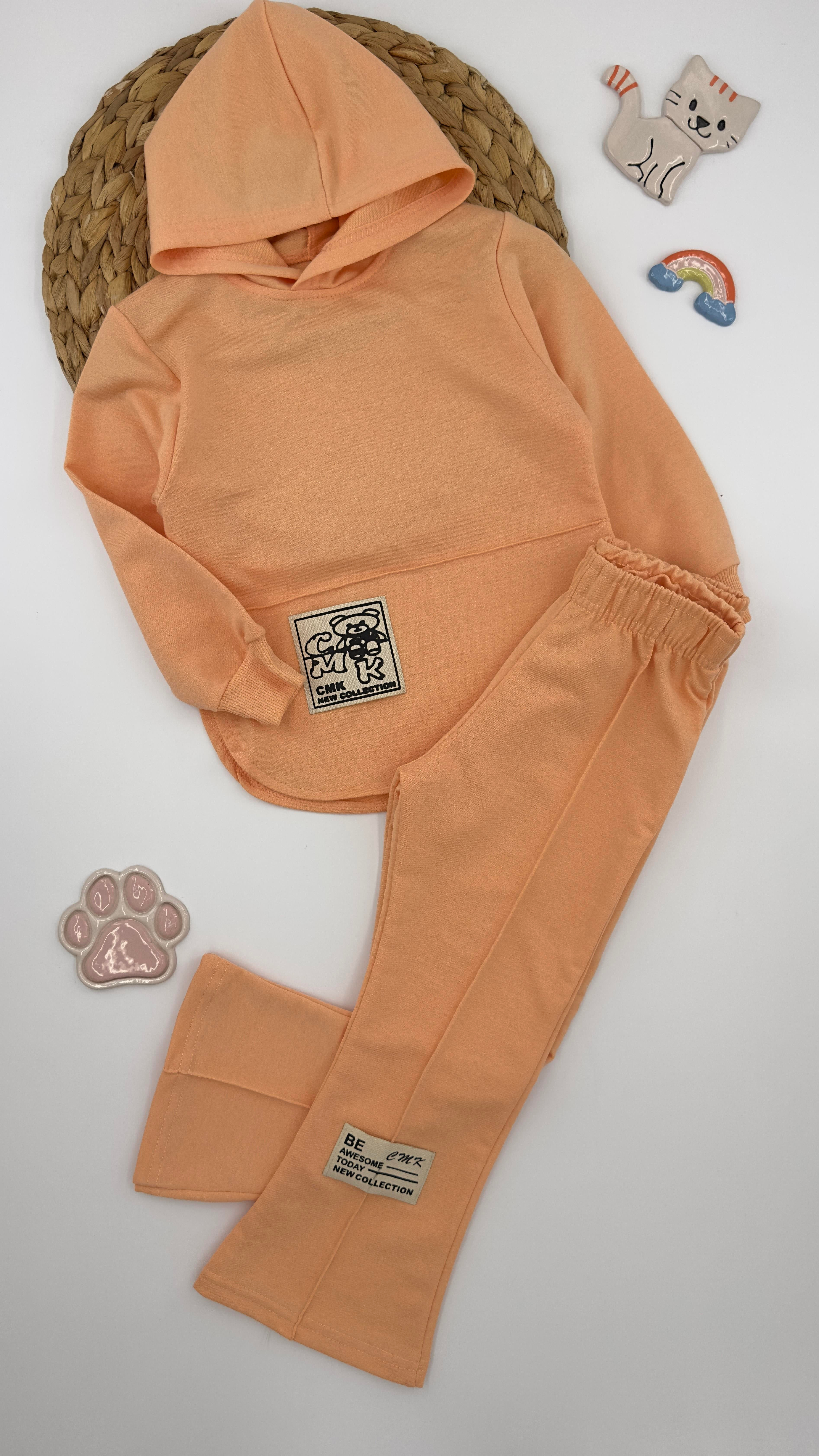 27090 Oval Kesim Kapişonlu Ayıcık Armalı Kız Takım SOMON