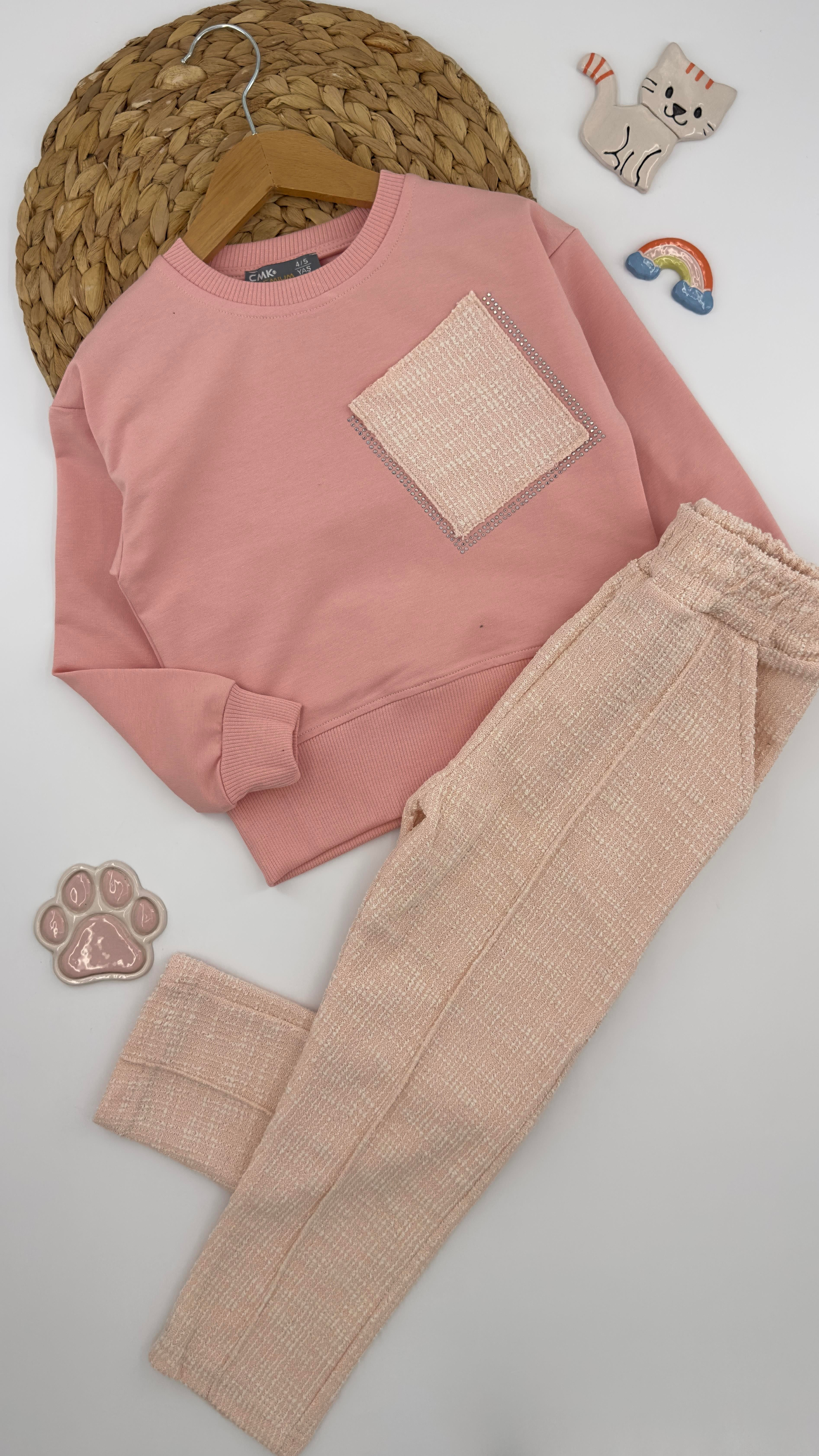27090 Sahte Cep Görünümlü Tüvit Pantolonlu Kız Takım SOMON