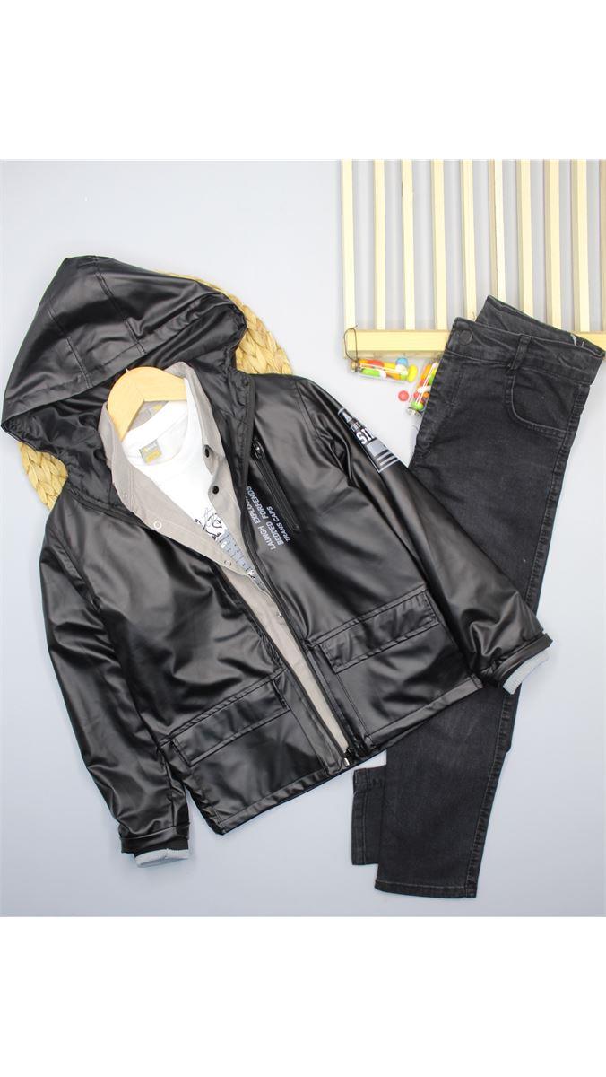 2740 Dörtlü Erkek Takım Anorak Kumaş Ceket Kot Pantolon T-shırt ve Gömlek GRİ