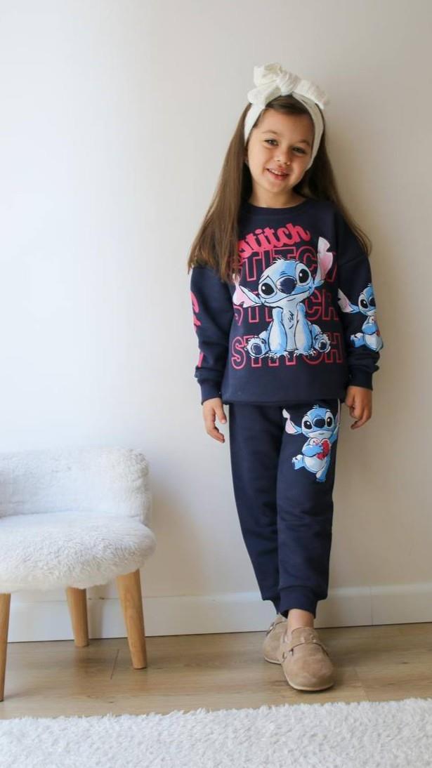 2802-13 Llilo Ve Stitch Baskılı Kız Çocuk Takım LACİVERT
