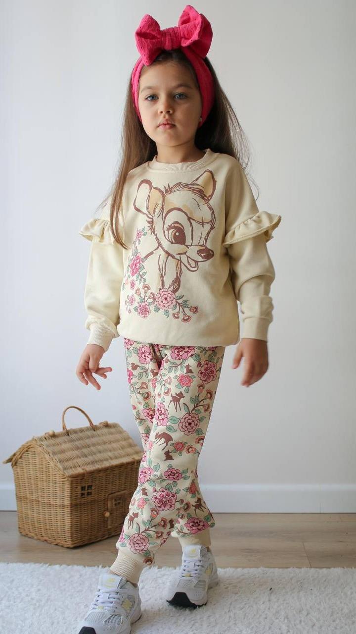 2802-7 Bambi Baskılı Kız Çocuk Takım KREM