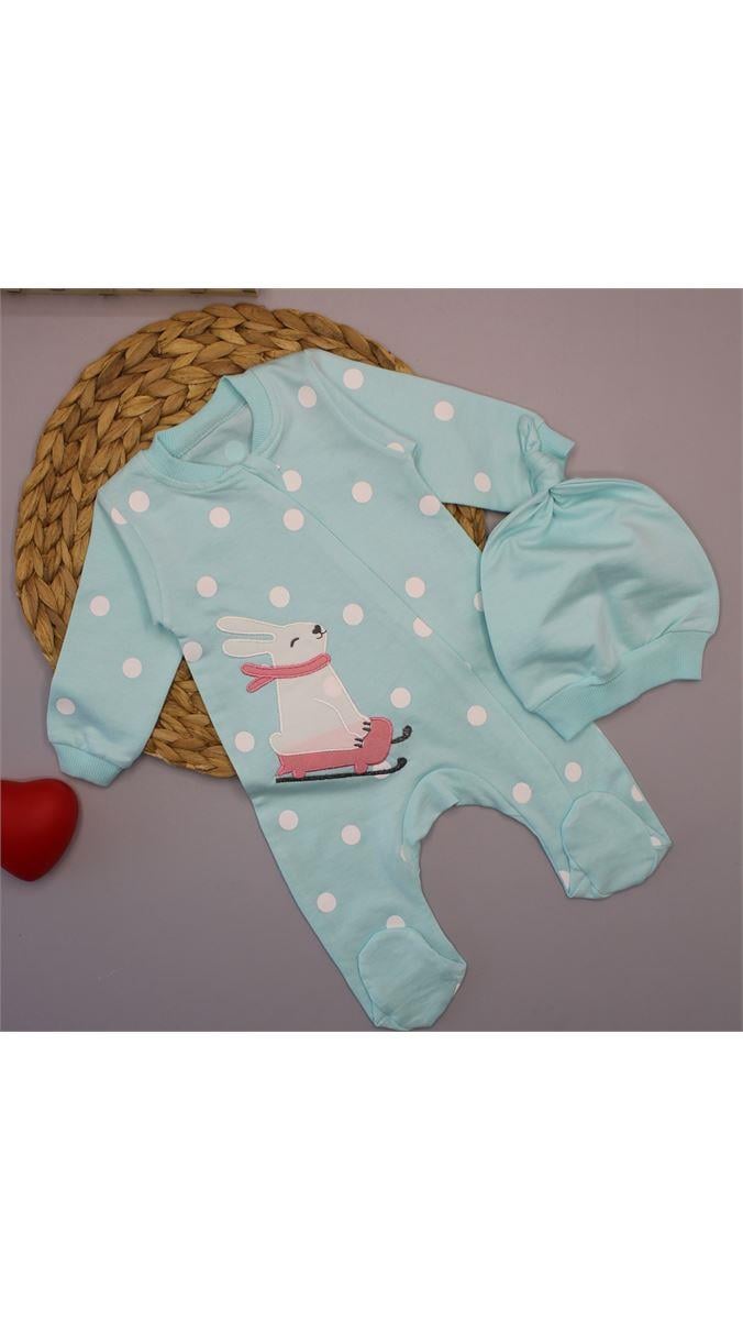 30112 Tavşan Figürlü İkili Şapkalı Tulum YEŞİL
