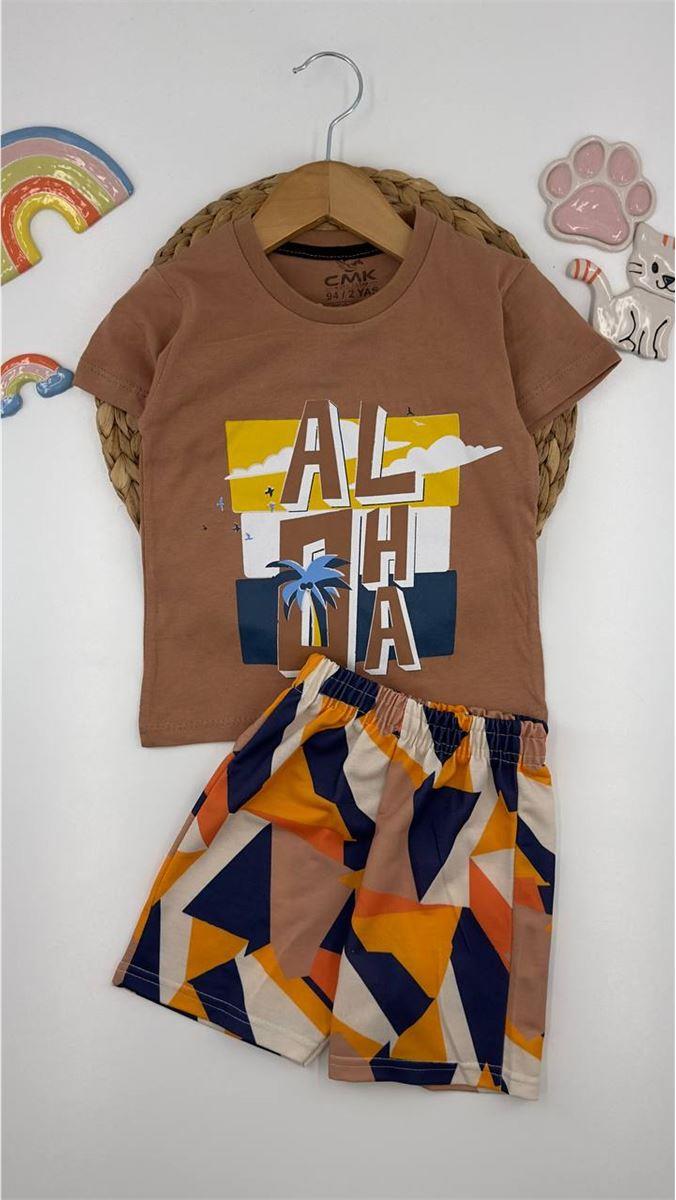 30215 Aloha Baskılı İkili Takım KAHVERENGİ