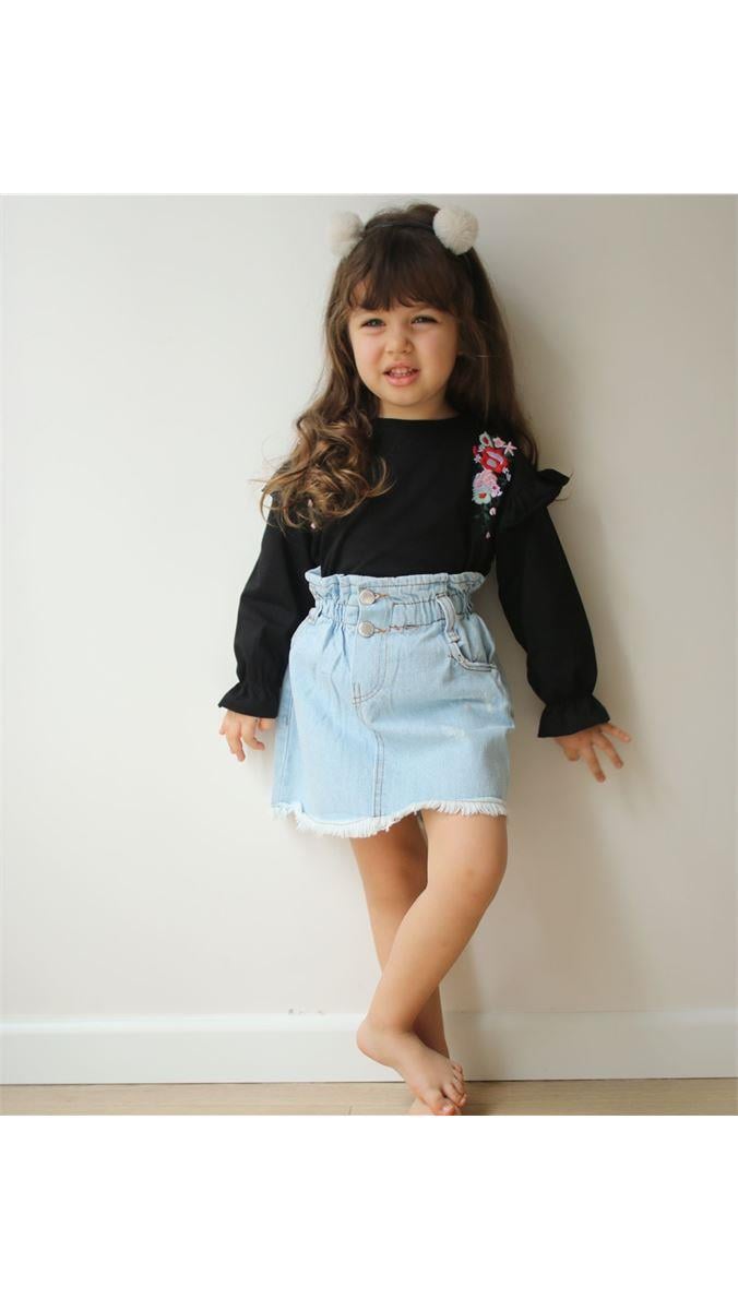 3032 Bebe Yaka Gömlekli Kot Etekli Takım SİYAH
