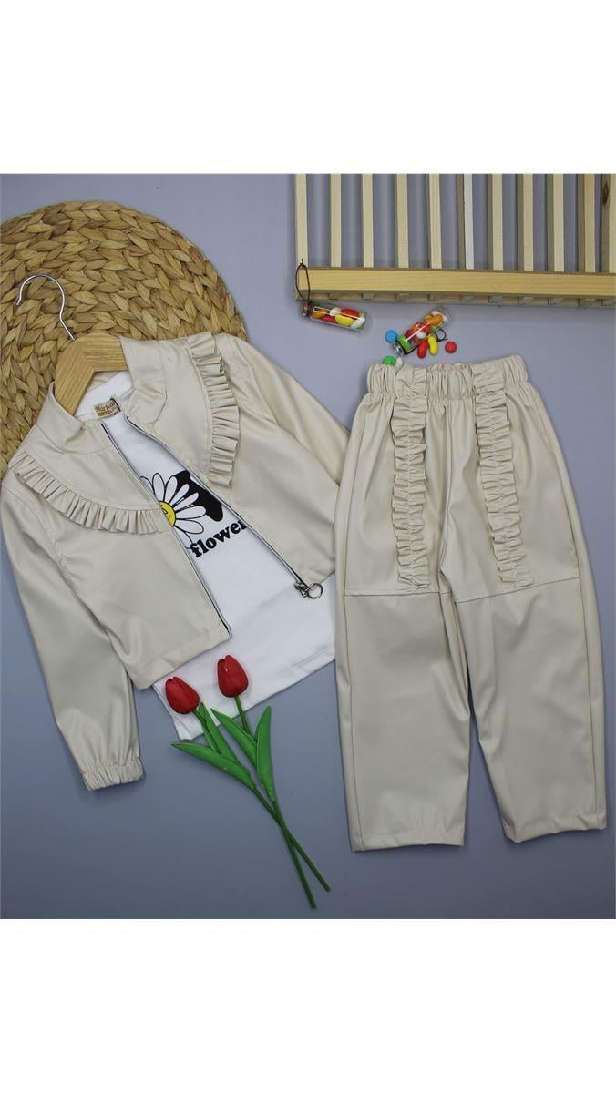 30579 Deri Fırfırlı Üçlü Takım TAŞ