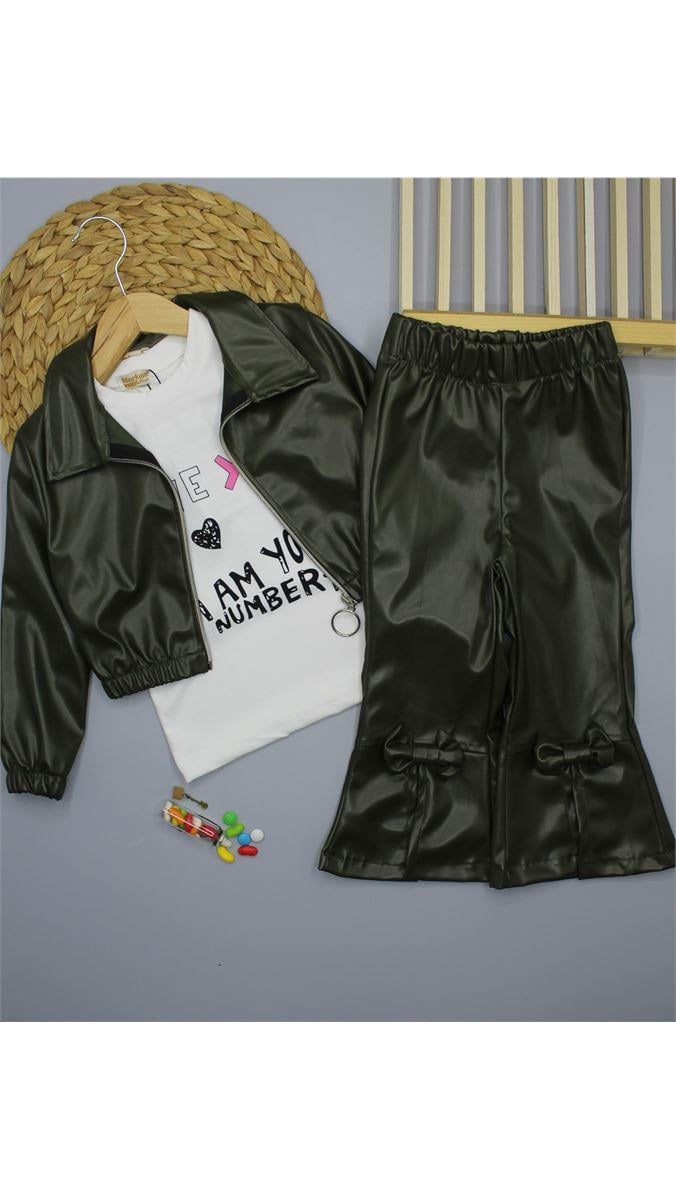 30584 Ceketli Fiyonklu Üçlü Deri Takım HAKİ YEŞİL