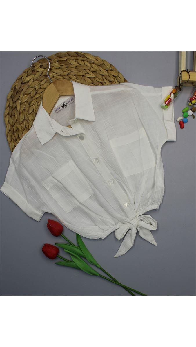 3093-3 Crop Cepli Gömlek BEYAZ