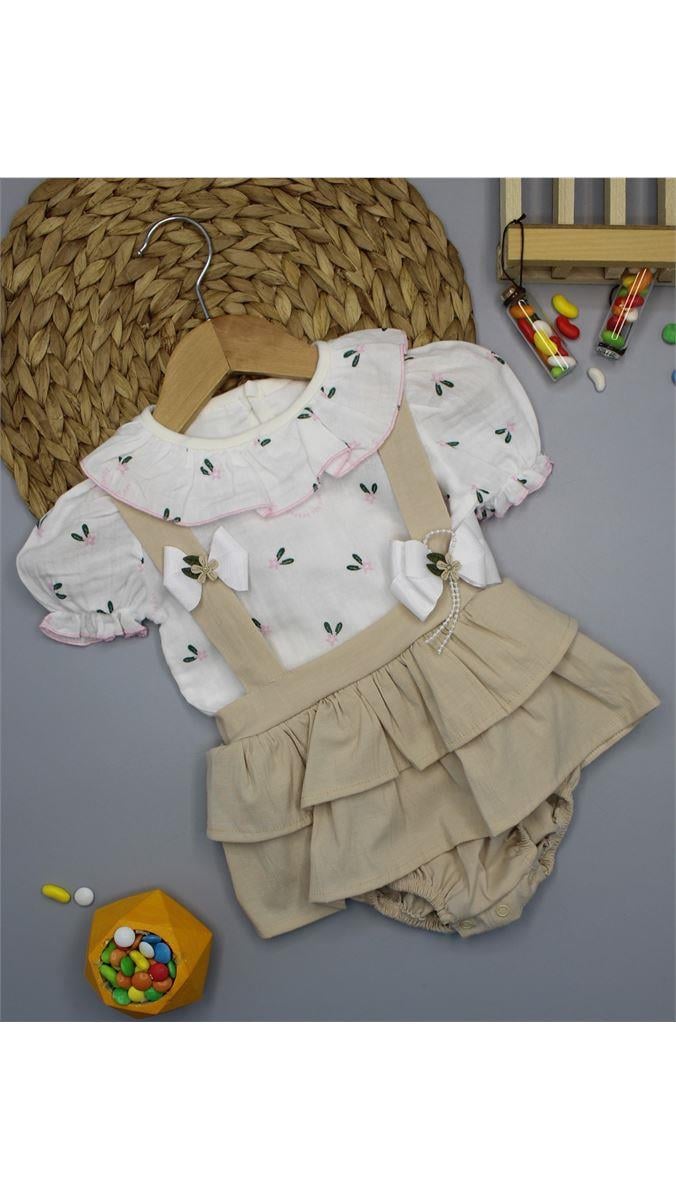 3094 Bebe Likralı Müslin Body Çıtçıtlı Salopet KREM