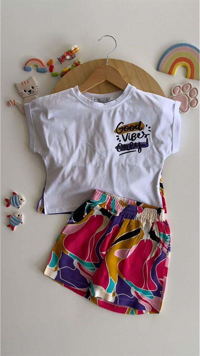 3152 Good Vibes Şortlu Kız Takım BEYAZ