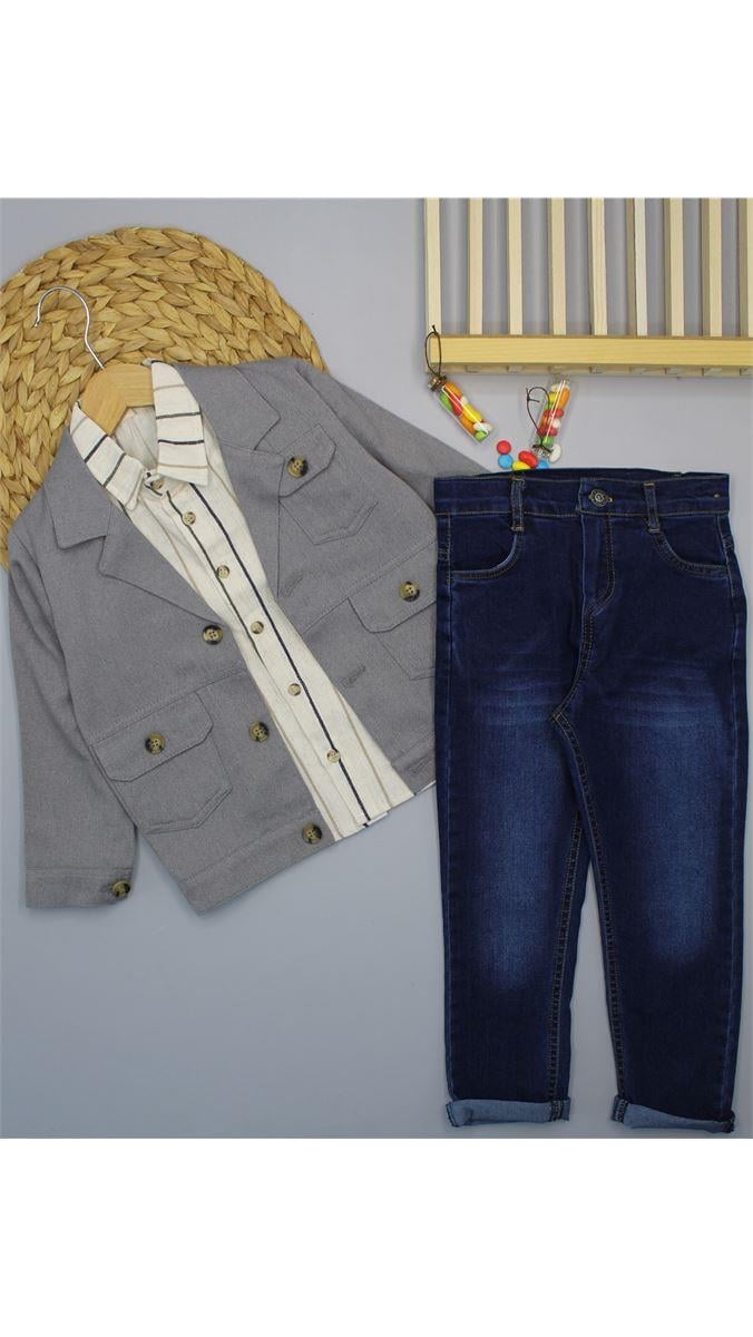 3308 Gömlekli Kot Pantolonlu Üçlü Takım GRİ