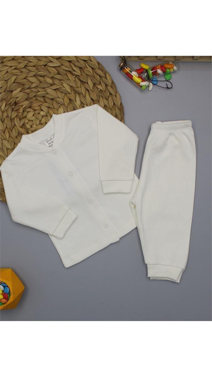 3400 Fitilli Önden Çıtçıtlı Pijama Takımı BEYAZ