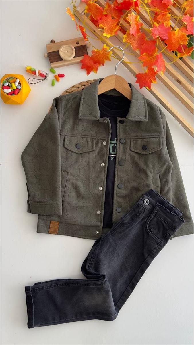 3490 Süet Ceketli Üçlü Takım YEŞİL