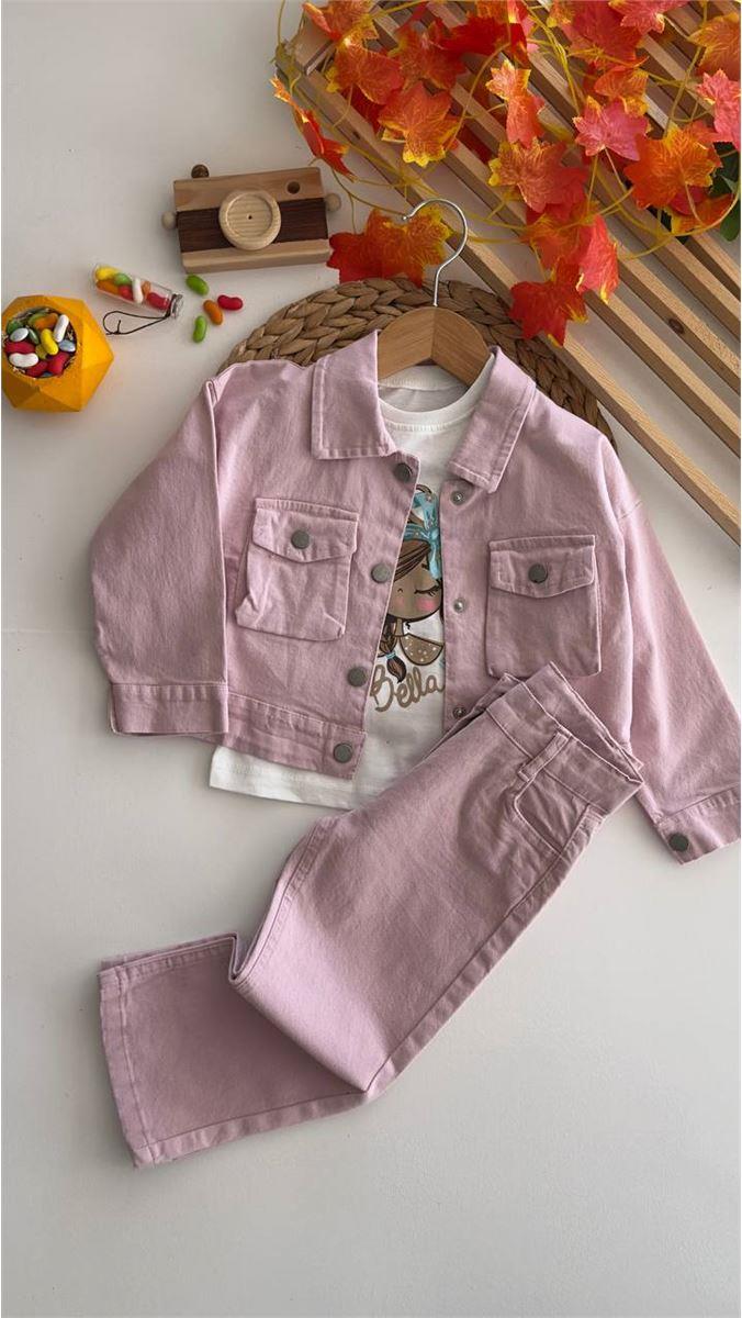 3506 Cep Detaylı Ceketli Kız Takım PEMBE