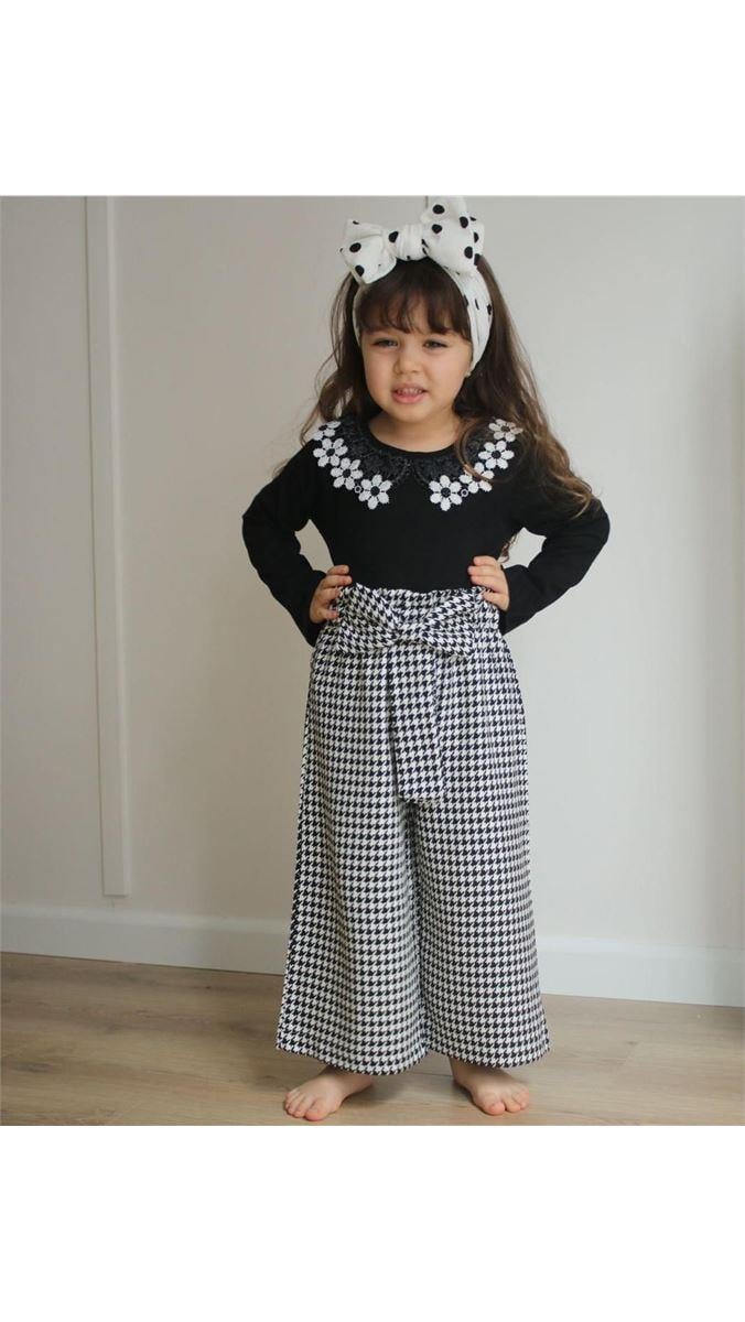 351 Kaz Ayağı Pantolonlu Paptya Dantelli İkili Takım SİYAH