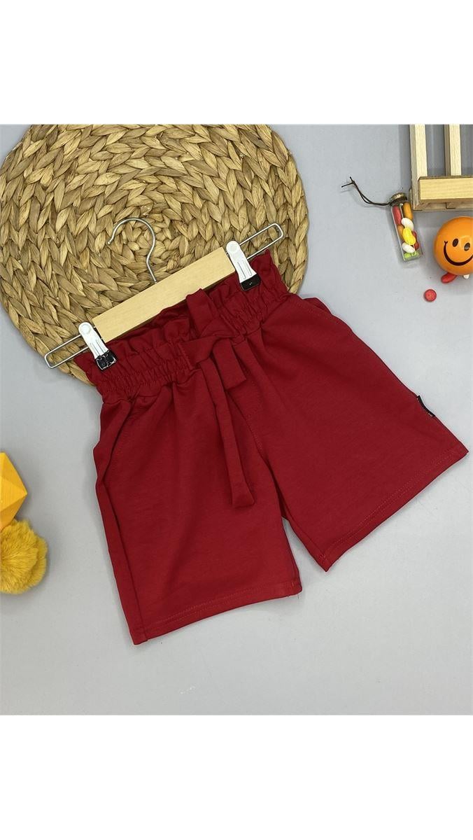 3833 Bel Bağıcıklı Cepli Kız Şort KIRMIZI