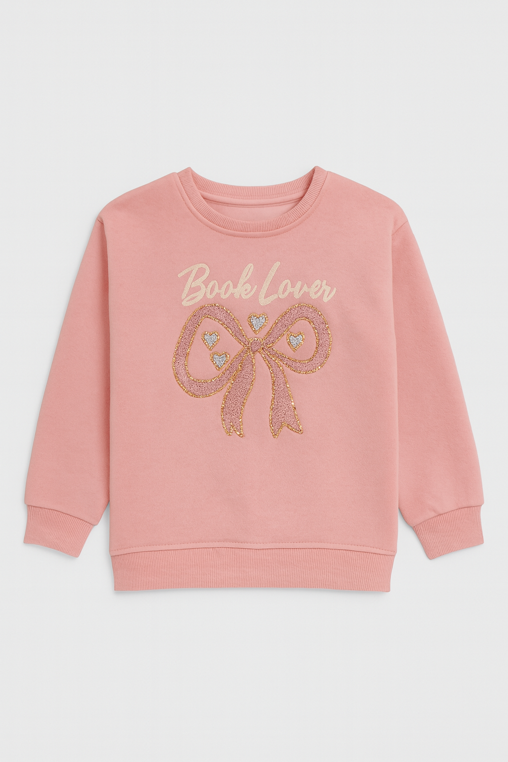 3843 Book Lover Yazılı Taşlı Fiyonk İşlemeli Şardonlu Sweat PEMBE