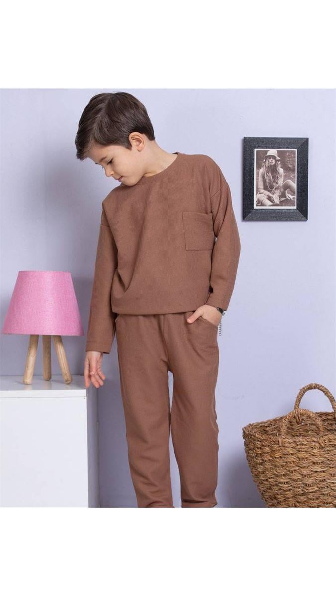 4003 Waffle Kumaş İkili Takım KAHVERENGİ