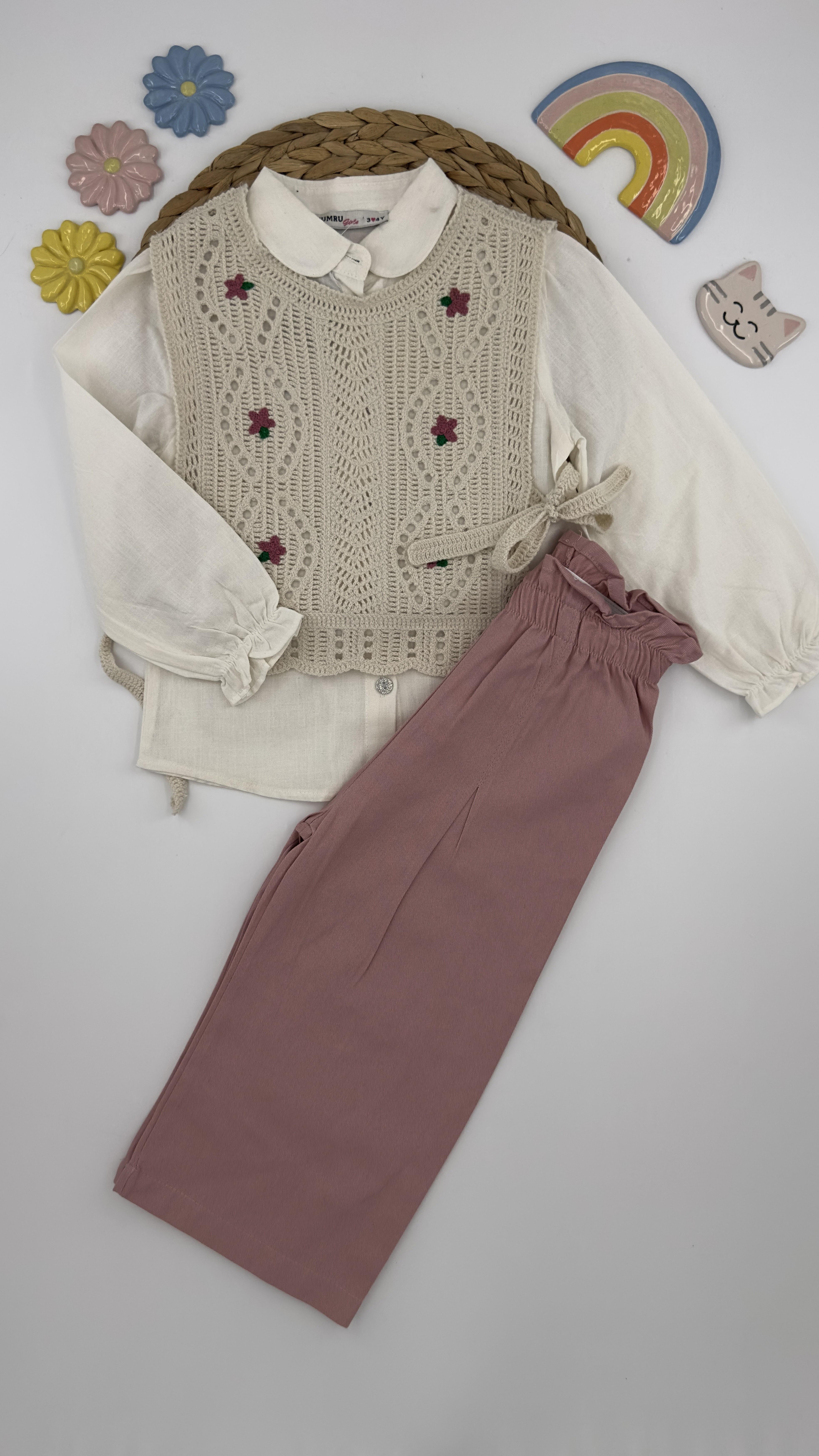 4395 Süeterli Gömlekli Üçlü Takım PEMBE