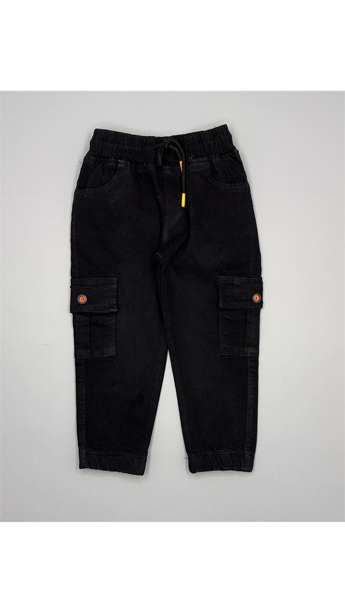 4555 Kargo Cepli Paça ve Bel Lastikli Likralı Pantolon SİYAH