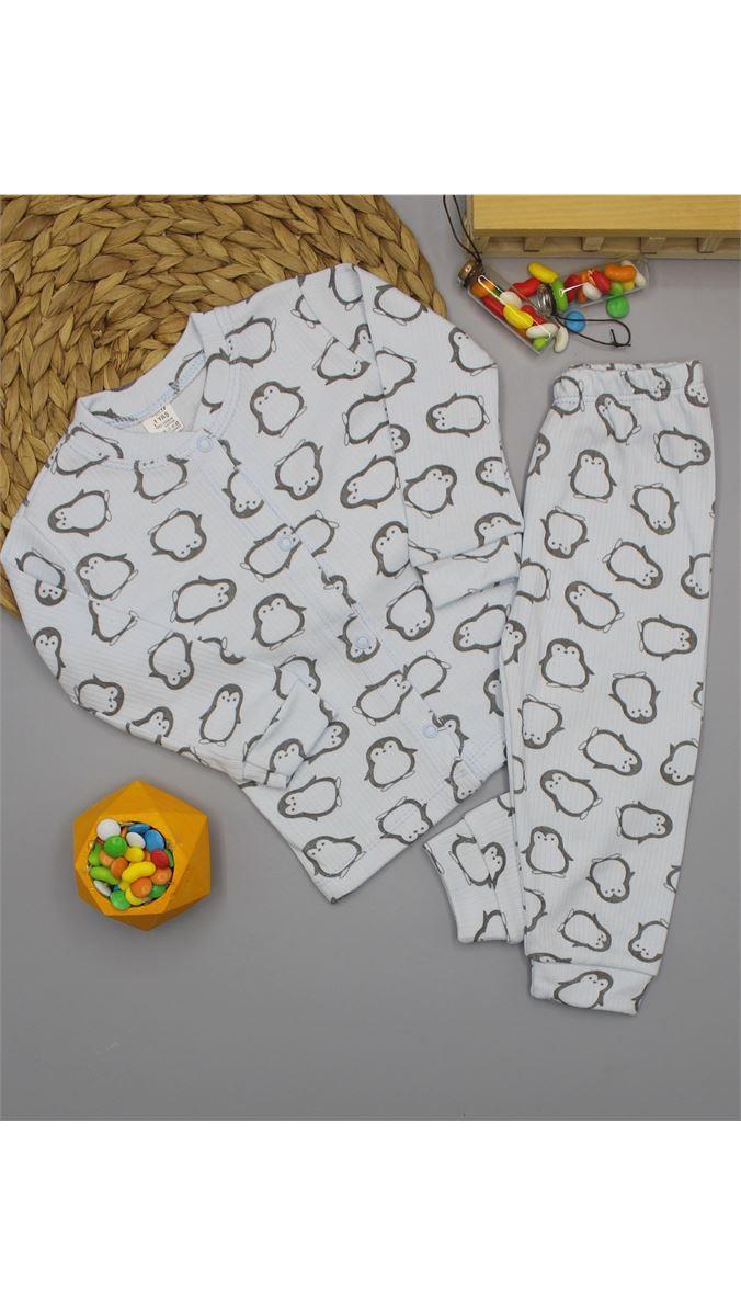 4704 Penguen Baskılı Takım BEBE MAVİ
