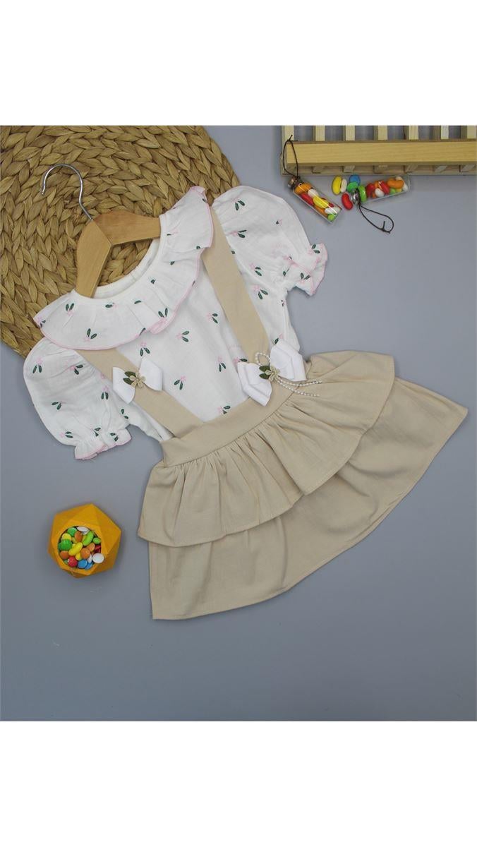 5043 Likralı Müslin Body Katkat Etekli Slopet Elbise KREM