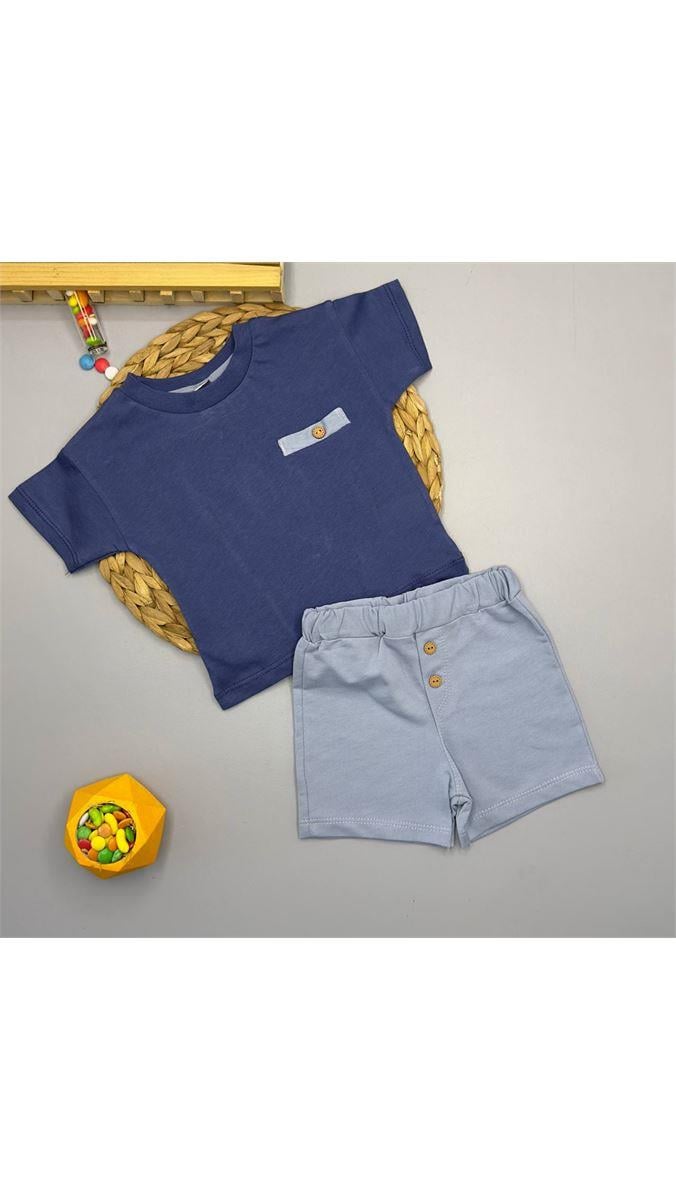 5051 Cep Düğme Detaylı İkili Takım MAVİ