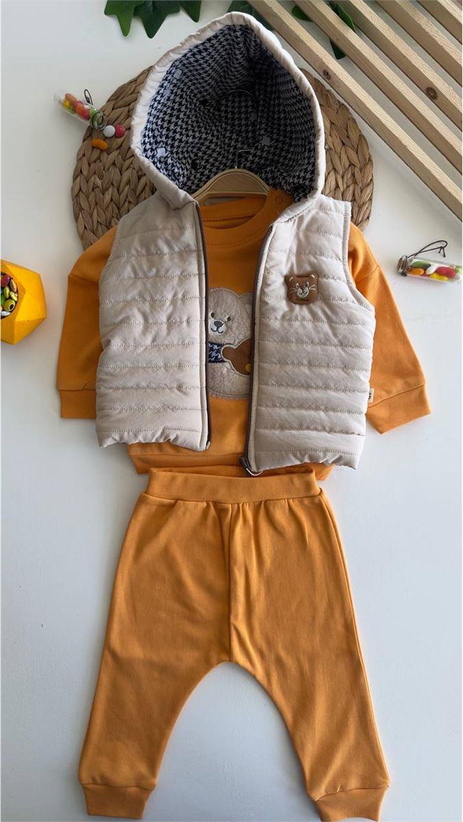 5093 Yelekli Üçlü Erkek Takım KAHVERENGİ 5093 Yelekli Üçlü Erkek Takım KREM