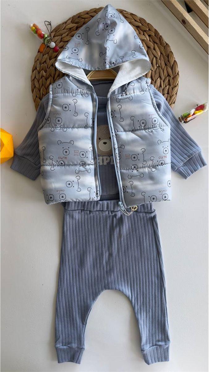 5110 Ayıcık Detaylı Üçlü Erkek Takım MAVİ
