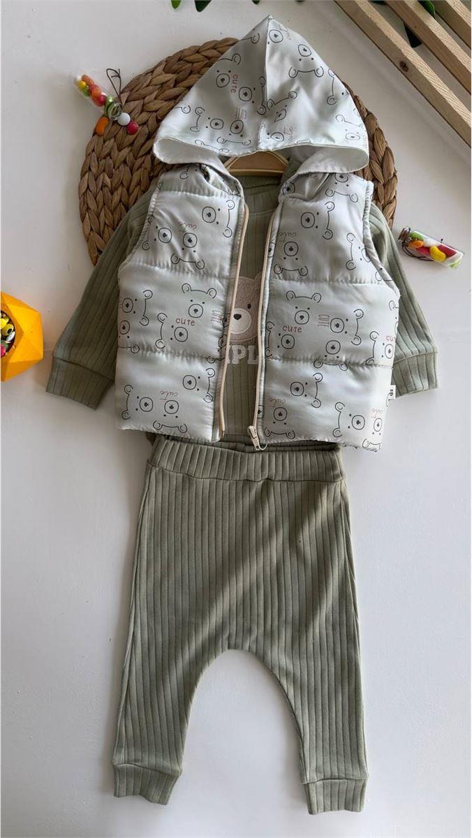 5110 Ayıcık Detaylı Üçlü Erkek Takım YEŞİL