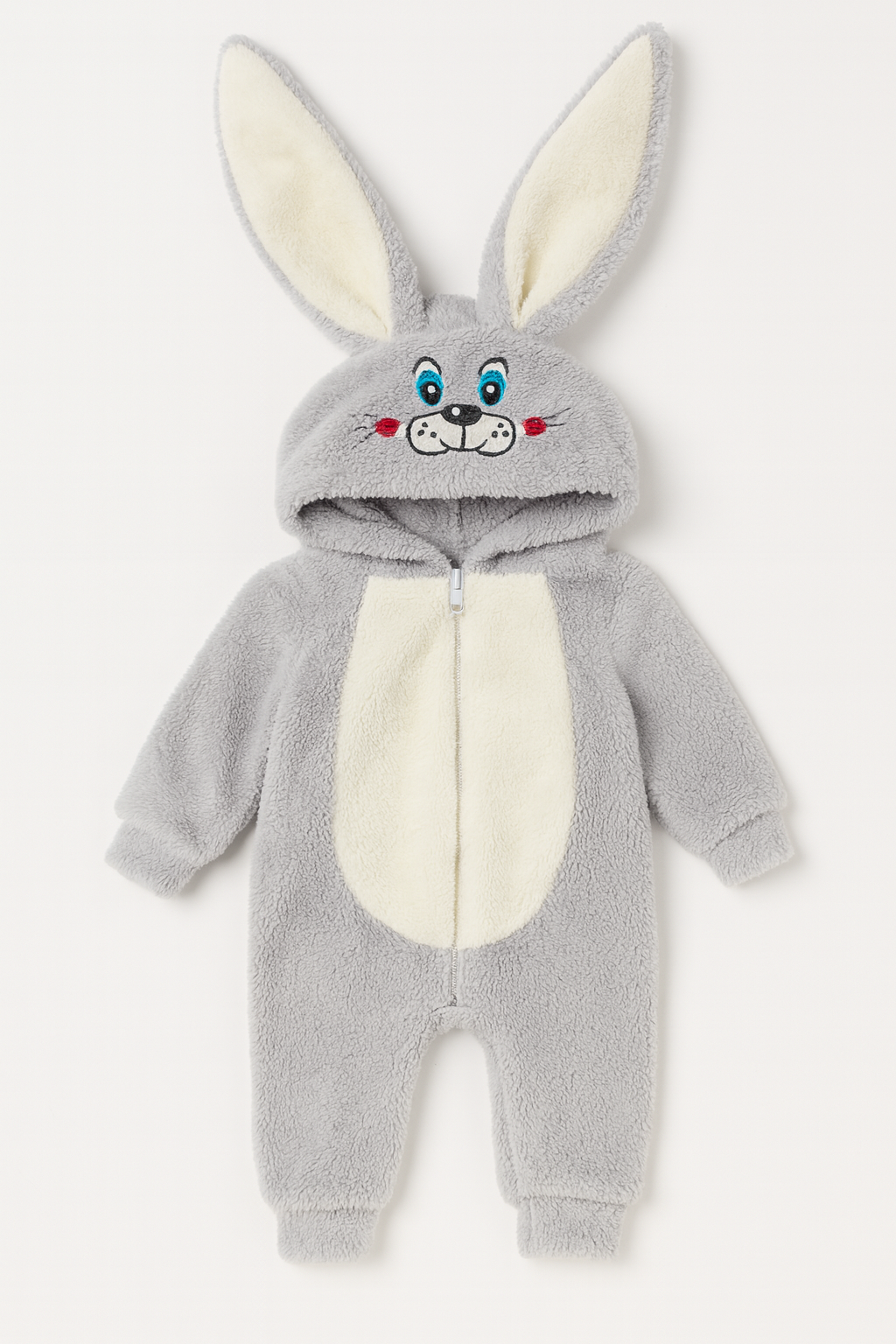 5153-1 Tavşanlı Peluş Tulum GRİ
