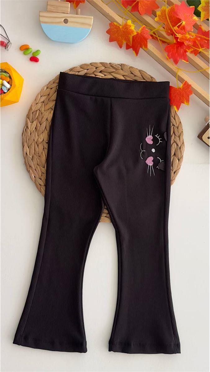 51537 Kedi Desenli Fitlli İspanyol Paça Tayt SİYAH