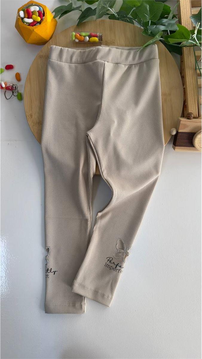 54561 Kelebek Detaylı Taşlı Fitilli Tayt KAHVERENGİ