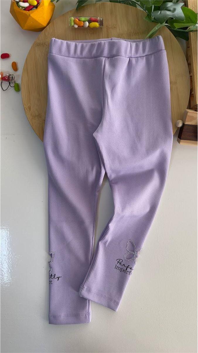 54561 Kelebek Detaylı Taşlı Fitilli Tayt LİLA