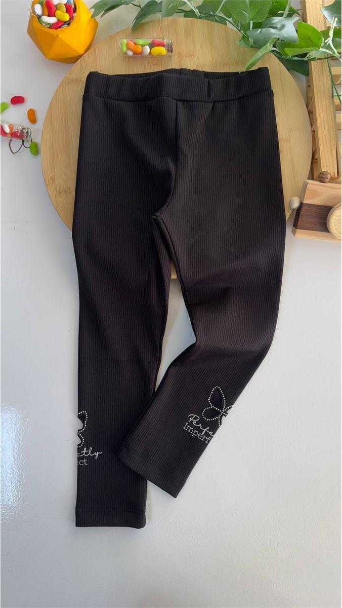 54561 Kelebek Detaylı Taşlı Fitilli Tayt SİYAH
