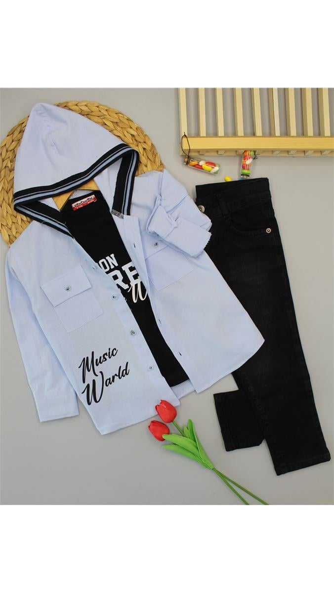 5611 Music World Nakışlı Üçlü Erkek Takım MAVİ