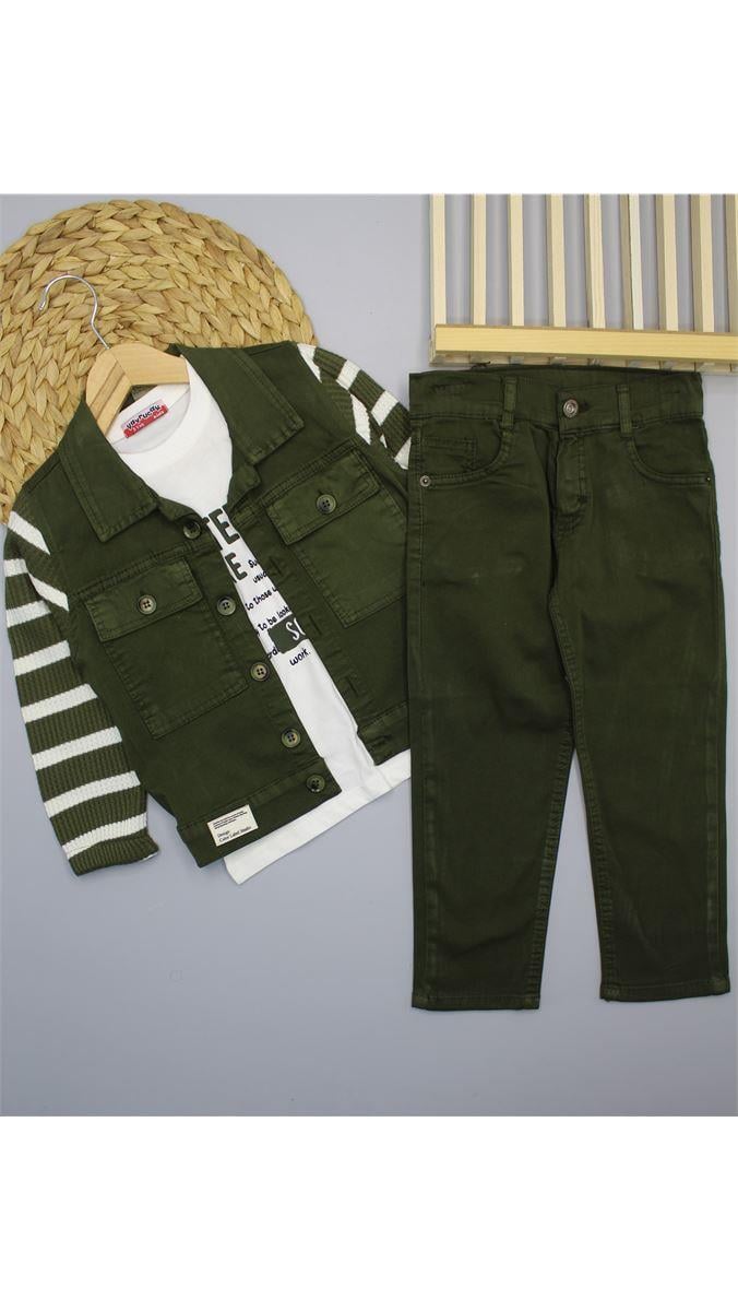 5651 Triko Kol Detaylı Üçlü Takım YEŞİL