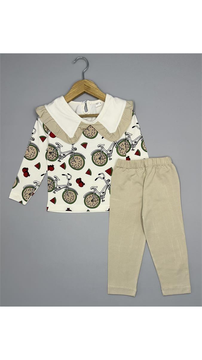5702 Yakalı Bisiklet Desenli Kız Takım BEJ