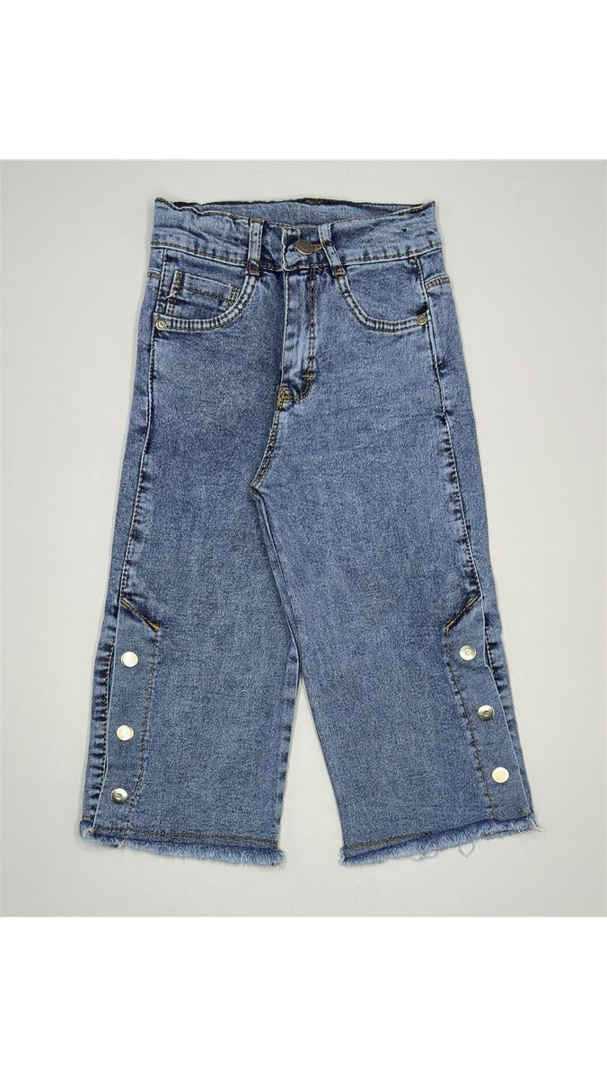 59332 Çıtçıtlı İspanyol Bol Paça Kız Kot Pantolon MAVİ