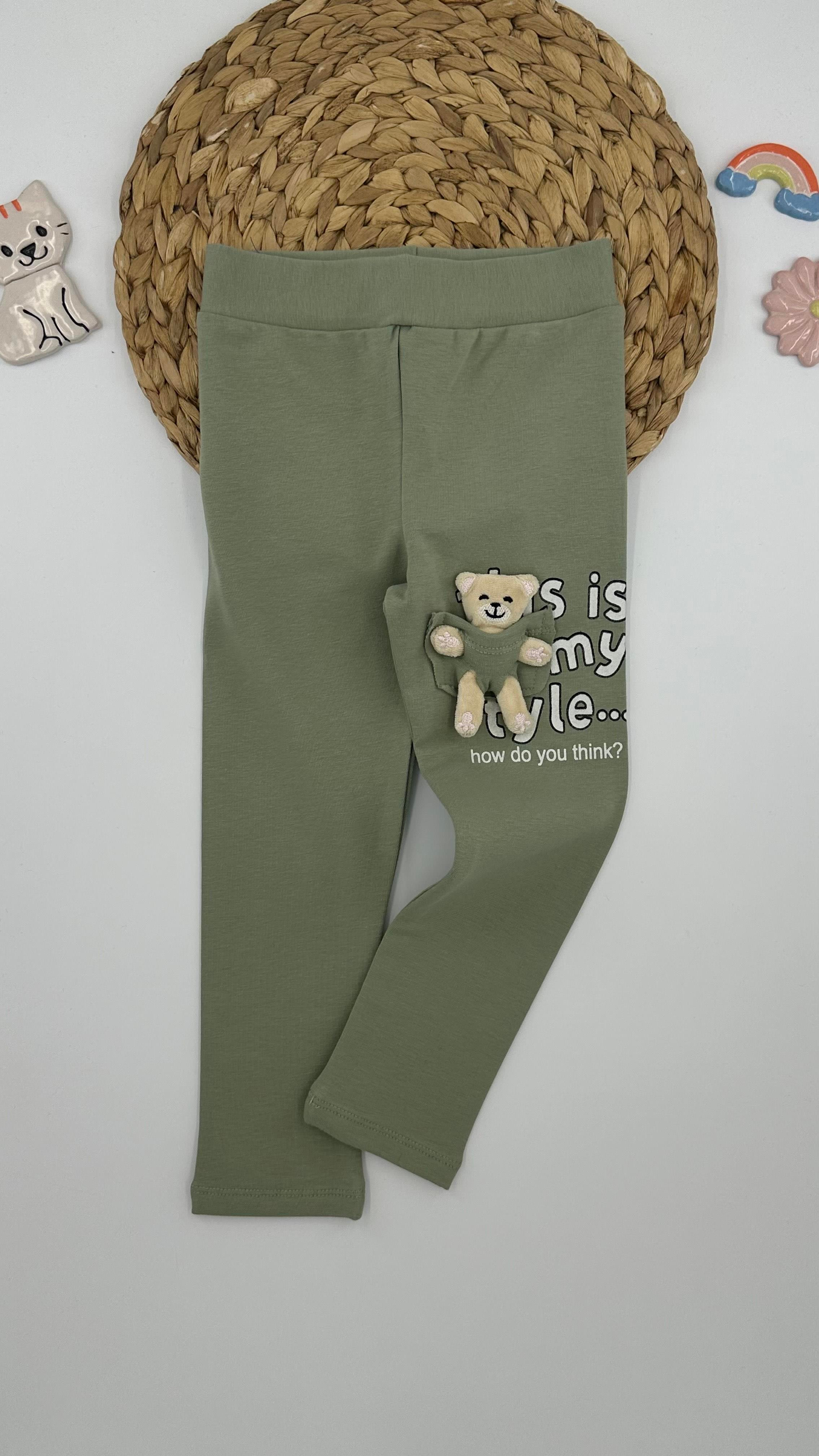 60521 Ayıcık Detaylı Kız Çocuk Tayt YEŞİL