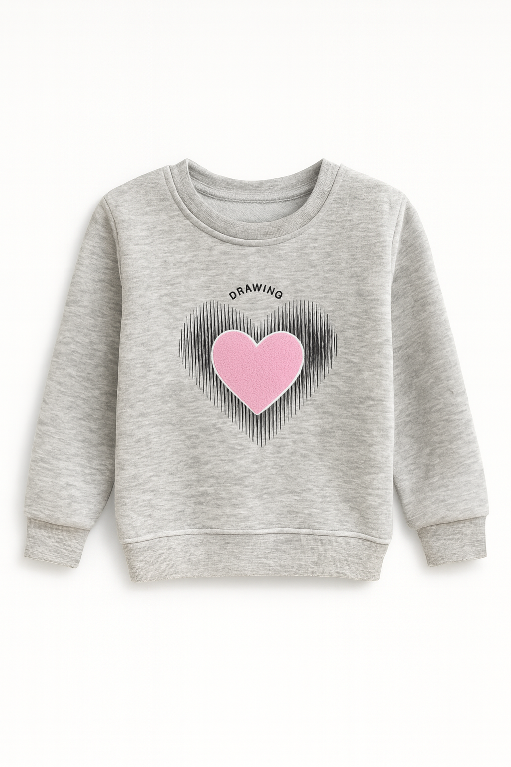 60535 Kalp Baskılı Şardonlu Sweat GRİ