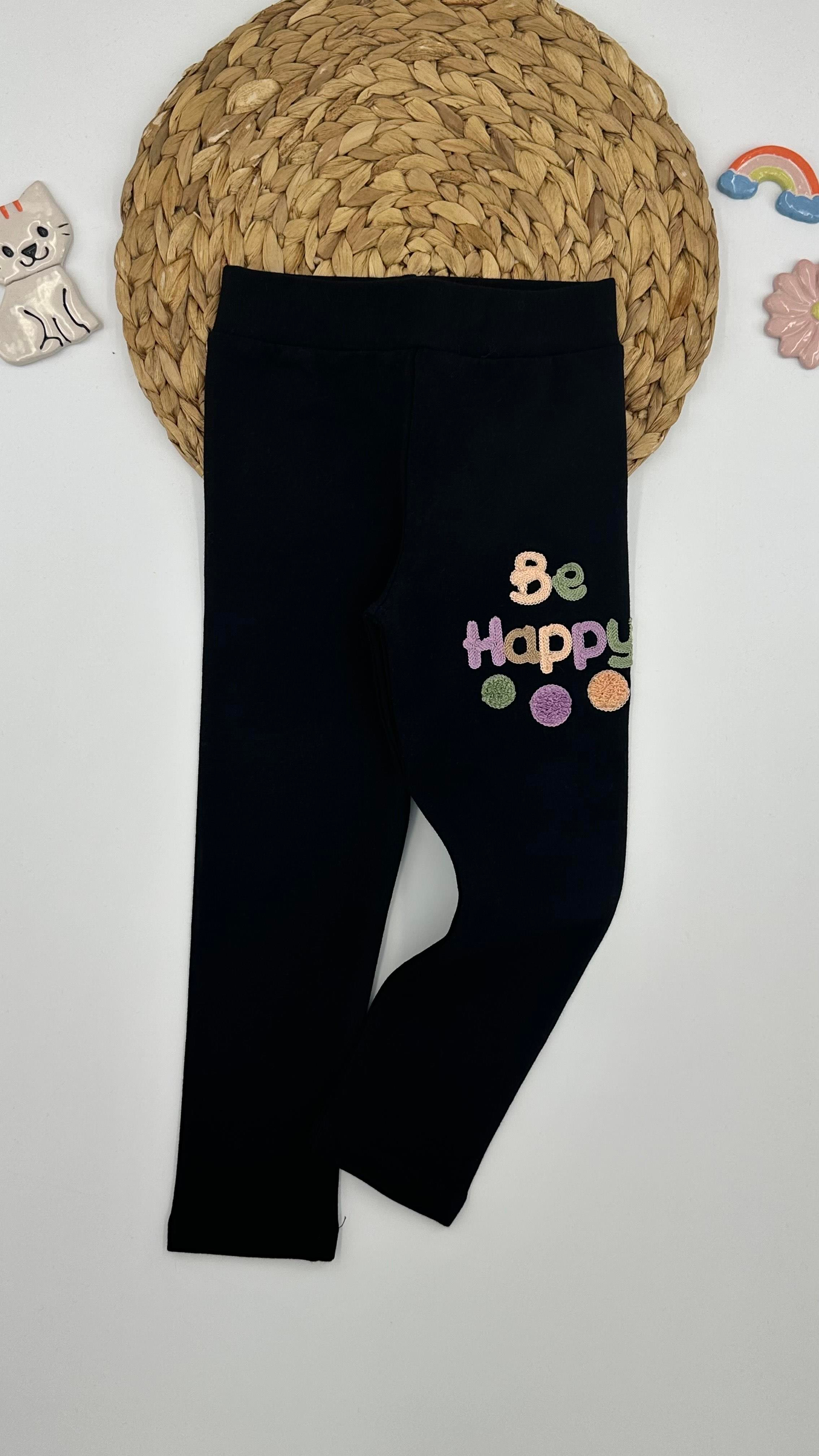 60537 Be Happy Desenli İki İplik Şardonlu Tayt SİYAH