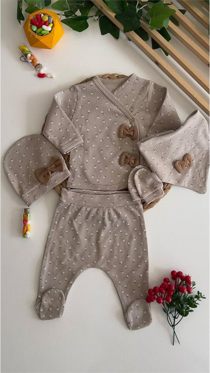 6122 Çiçek Desenli Beşli Takım KAHVERENGİ