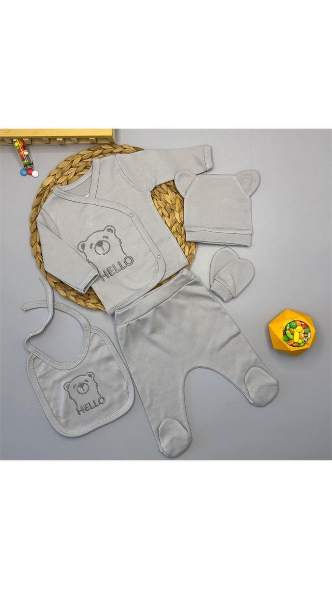 6134 Hello Yazılı Beşli Erkek Takım GRİ