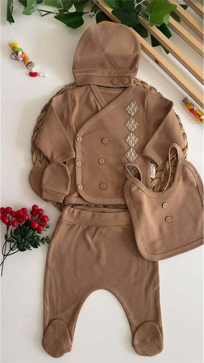 6168 Örgü Nakışlı Beşli Takım KAHVERENGİ