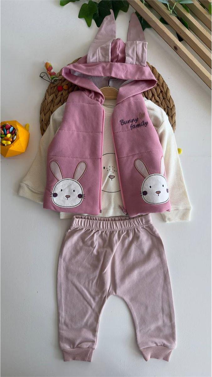 6186 Ay Tavşan Detaylı Üçlü Kız Takım GÜL KURUSU