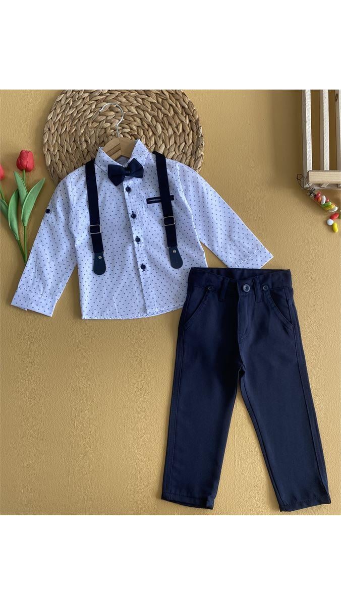6327 Pantolon Askılı Gömlekli Dörtlü Takım LACİVERT