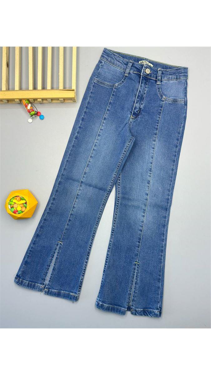 6400-1 Önden Yırtmaçlı Geniş Paça Likralı Kot Pantolon MAVİ